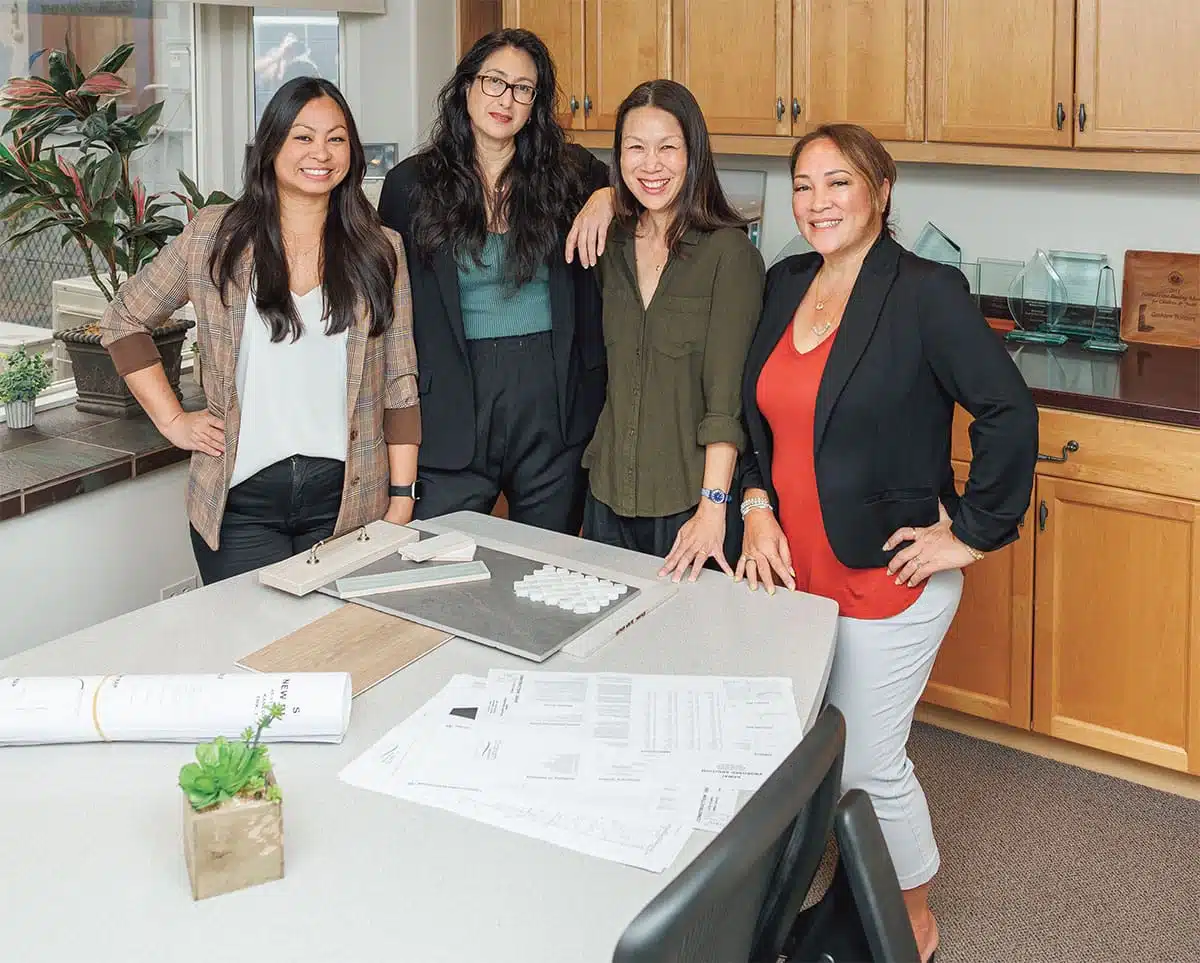 Photo credit to Aaron K. Yoshino. LEFT TO RIGHT: Renee Lee, Offi ce Manager/Purchasing; Malia Yee, Senior Architectural Designer; Marissa Selders, Design Coordinator; Lenore Smith, Client Care Manager